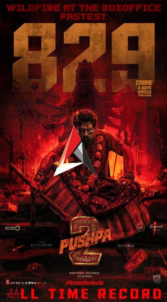 అల్లు అర్జున్ నట విశ్వరూపంకు, సుకుమార్ వరల్డ్ క్లాస్ టేకింగ్.. ప్రపంచ సినీ ప్రేమికులు ఫీదా అయిపోయారు. ముఖ్యంగా ఇండియాలో ఈ చిత్రం సృష్టించిన రికార్డుల పరంపరకు ఆకాశమే హద్దుగా ఉంది. సినిమా తొలి రోజు నుంచే మొదటి రోజు, రెండవ రోజు, మూడవ రోజు వసూళ్లలో వరుసగా ఇండియా ఆల్టైమ్ రికార్డులు సృష్టించిన ఈ చిత్రం తాజాగా నాలుగు రోజు వసూళ్లలో కూడా రూ. 829 కోట్లు వసూలు చేసి ఇండియా చరిత్రలో ఆల్టైమ్ రికార్డు సృష్ఠించింది. కేవలం నాలుగు రోజుల్లోనే రూ.829 కోట్లు వసూలు చేసిన తొలి భారతీయ చిత్రంగా ‘పుష్ప-2’ ది రూల్ బాక్సాఫీస్పై సరికొత్త అధ్యాయాన్ని క్రియేట్ చేసింది.