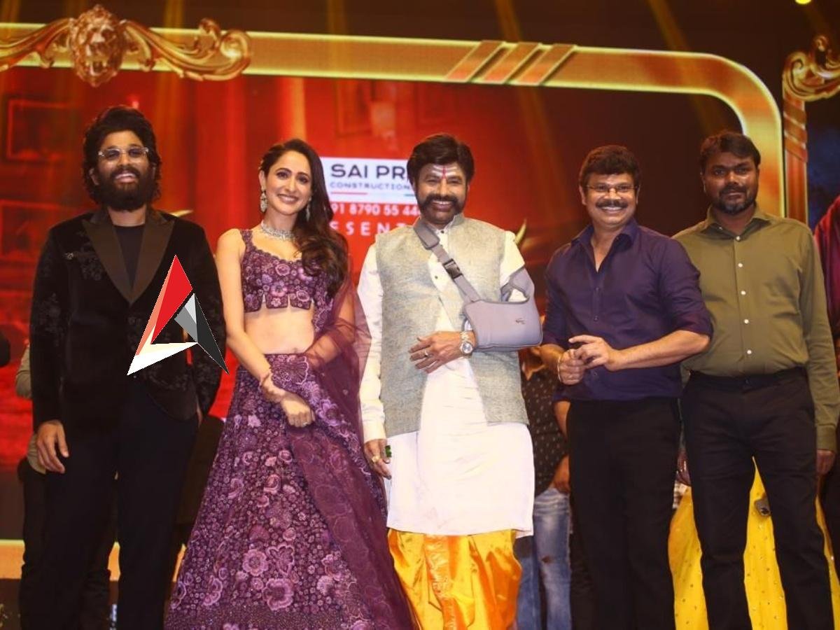 Akhanda Pre release Event నందమూరి బాలకృష్ణ బోయపాటి కాంబినేషన్‌‌లో రాబోతోన్న హ్యాట్రిక్ సినిమా అఖండ. ఇప్పటికే సినిమా మీద భారీ స్థాయిలో అంచనాలు ఏర్పడ్డాయి. సింహా, లెజెండ్ వంటి చిత్రాల తరువాత రాబోతోన్న ఈ మూడో సినిమా రికార్డులు క్రియేట్ చేయబోతోన్నట్టుంది. డిసెంబర్ 2న రాబోతోన్న ఈ మూవీ ప్రీ రిలీజ్ ఈవెంట్ శనివారం రాత్రి జరిగింది. ఈ ఈవెంట్‌కు రాజమౌళి, అల్లు అర్జున్ ముఖ్య అతిథులుగా విచ్చేశారు.