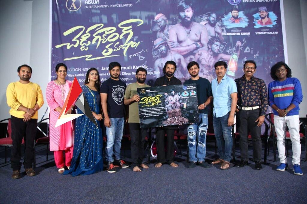 అబుజా ఎంటర్టైన్మెంట్స్ మరియు శ్రీ లీల ఎంటర్టైన్మెంట్స్ పతాకంపై వెంకట్ కళ్యాణ్ హీరోగా నటిస్తూ దర్శకత్వం వహిస్తున్న ఈ చిత్రంలో గాయత్రి పటేల్ హీరోయిన్.సిహెచ్ క్రాంతి కిరణ్ నిర్మాణంలో తెరకెక్కుతున్న చిత్రం. “చెడ్డి గ్యాంగ్ తమాషా”.ఈ చిత్రం షూటింగ్ పూర్తి చేసుకొని సెన్సార్ కు వెళ్ళబోతున్న సందర్బంగా చిత్ర టీజర్ ను గ్రాండ్ గా రిలీజ్ చేశారు.ఈ కార్యక్రమానికి ముఖ్య అతిధిగా వచ్చిన దర్శకుడు నాగ్ అశ్విన్ చిత్ర టీజర్ ను విడుదల చేశారు. ఇంకా ఈ కార్యక్రమంలో నాగ్ అశ్విన్ తల్లి డాక్టర్ జయంతి రెడ్డి, డాక్టర్ ఉషా,ఇన్ సెక్యూర్ డైరెక్టర్ లక్కీ,నటుడు లోహిత్ కుమార్, కోయ కిషోర్ లతో పాటు చిత్ర యూనిట్ సభ్యులు పాల్గొన్నారు.