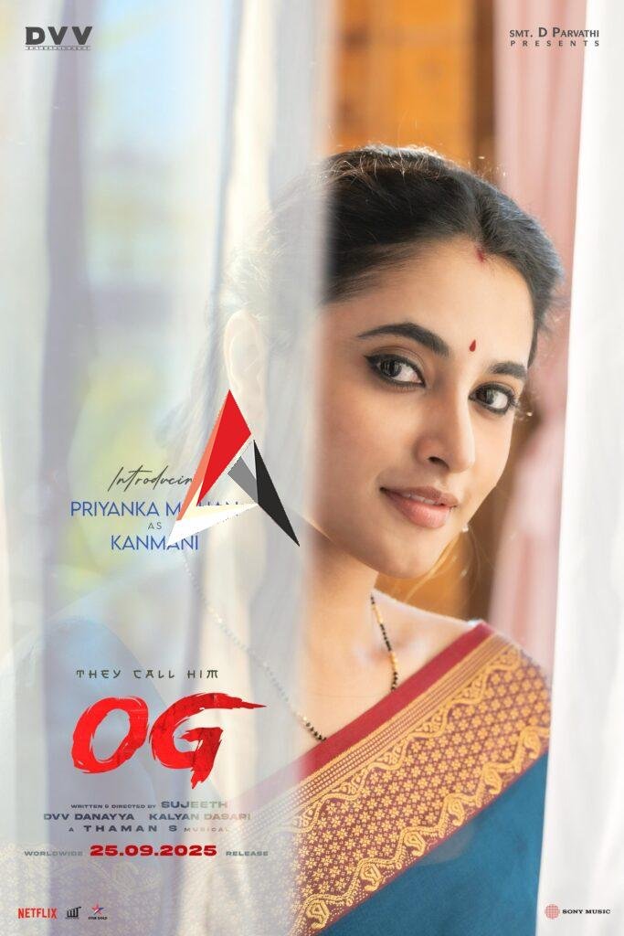 అందరూ ఎంతో ఆసక్తిగా ఎదురుచూస్తున్న ‘ఓజీ’ సినిమా నుంచి ప్రియాంక అరుల్ మోహన్ ఫస్ట్ లుక్ను తాజాగా చిత్ర బృందం విడుదల చేసింది. ఈ చిత్రంలో ఆమె కన్మణిని పాత్రలో అలరించనున్నారు. ‘ఓజీ’ రూపంలో ఓ భారీ యాక్షన్ చిత్రాన్ని వెండితెరపై చూడబోతున్నామనే హామీని ఇప్పటిదాకా విడుదలైన ప్రచార చిత్రాలు ఇచ్చాయి. తాజాగా విడుదలైన ప్రియాంక మోహన్ ఫస్ట్ లుక్ మాత్రం అందుకు భిన్నంగా ఉంది. ఒక పోస్టర్ దయ, బలం, నిశ్శబ్దాన్ని ప్రదర్శిస్తోంది. మరో పోస్టర్ ప్రశాంతత మరియు గృహ వాతావరణాన్ని సూచిస్తుంది.