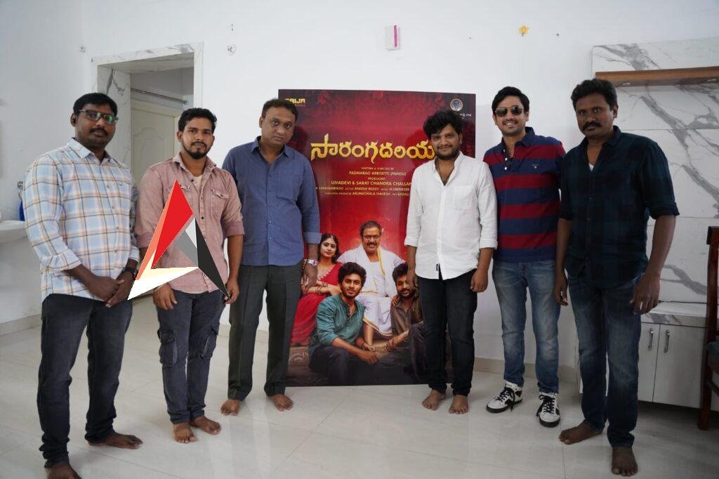 డైరెక్టర్ పద్మారావు అబ్బిశెట్టి(పండు )మాట్లాడుతూ.. అందరికీ నమస్కారం నేను “సారంగదరియా” మూవీ తో దర్శకుడిగా పరిచయమవుతున్నను ఈ అవకాశం ఇచ్చిన మా ప్రొడ్యూసర్స్ ఉమాదేవి & శరత్ చంద్ర గారికి ధన్యవాదాలు. ఈ రోజు మా మూవీ పోస్టర్ విడుదల చేసిన హీరో రాజ్ తరుణ్ గారికి థాంక్యూ . చిత్రం ఇంత బాగా రావడానికి సపోర్ట్ చేసిన రాజా రవీంద్ర గారికి ఎప్పటికీ రుణపడి ఉంటాను. ఈ సినిమా ఒక మధ్యతరగతి ఫ్యామిలీ లో జరిగిన కొన్ని ఘర్షణల తో కథ ఉంటుంది. మా చిత్రాన్ని త్వరలో విడుదల చెయ్యాలి అనుకుంటున్నాము త్వరలోనే మిగతా విషయాలు తెలియజేస్తాము ఆని అన్నారు.