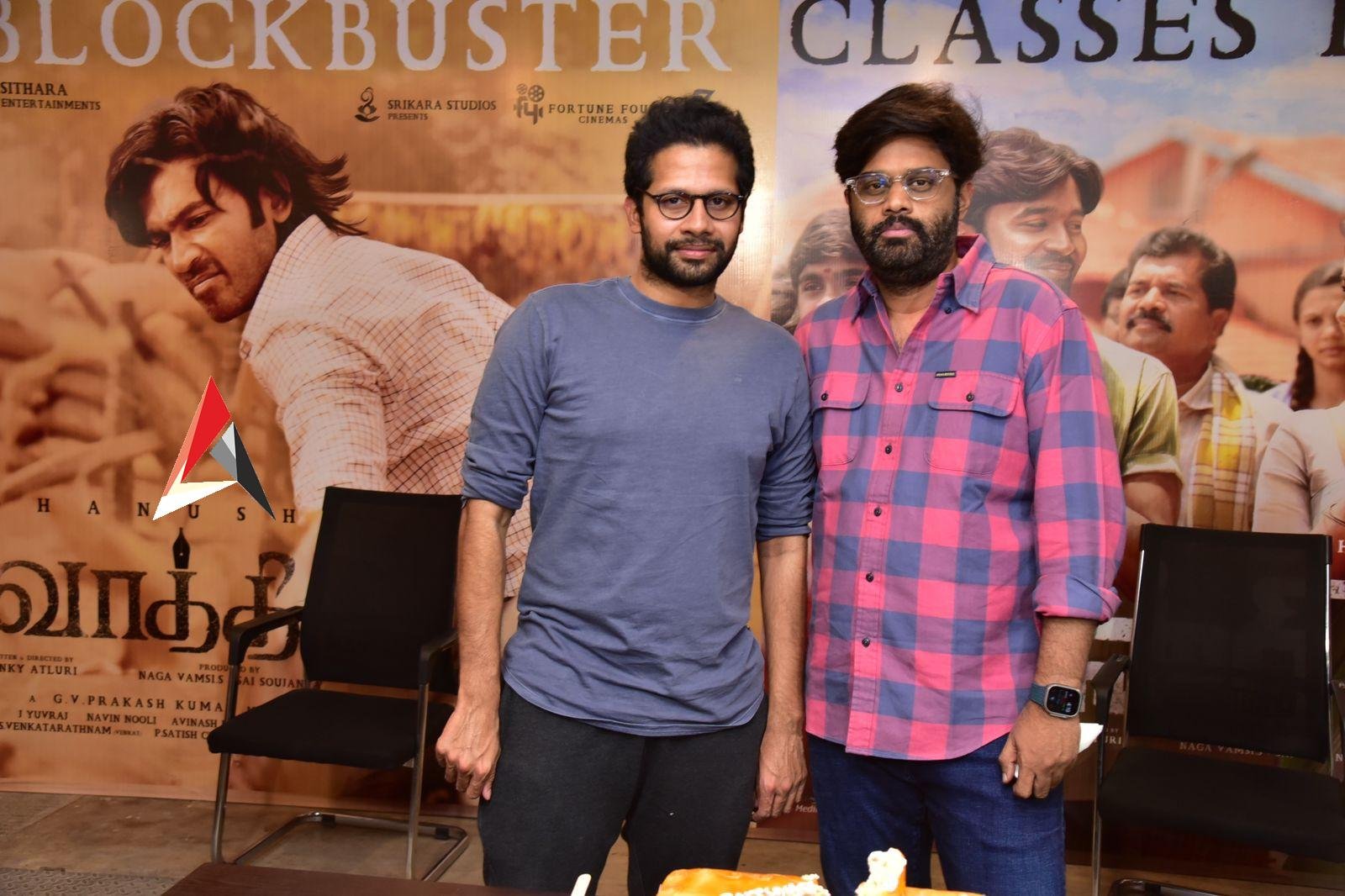 కోలీవుడ్ స్టార్ ధనుష్ నటించిన ద్విభాషా చిత్రం ‘సార్'(వాతి). ప్రముఖ నిర్మాణ సంస్థ సితార ఎంటర్టైన్మెంట్స్, ఫార్చ్యూన్ ఫోర్ సినిమాస్ తో కలిసి తెలుగు, తమిళ భాషల్లో ఈ చిత్రాన్ని నిర్మించింది. శ్రీకర స్టూడియోస్ సమర్పించిన ఈ చిత్రానికి సూర్యదేవర నాగవంశీ, సాయి సౌజన్య నిర్మాతలు. వెంకీ అట్లూరి దర్శకత్వంలో తెరకెక్కిన ఈ చిత్రంలో ధనుష్ సరసన సంయుక్త మీనన్ నటించింది. భారీ అంచనాలతో ఫిబ్రవరి 17న థియేటర్లలో విడుదలైంది. ముందు రోజు సాయంత్రం ప్రదర్శించిన ప్రీమియర్ షోల నుంచే ఈ చిత్రం పాజిటివ్ టాక్ తెచ్చుకుంది. ప్రేక్షకులు, విశ్లేషకుల నుంచి అద్భుతమైన స్పందన వస్తుండటంతో తాజాగా చిత్ర బృందం విలేకర్ల సమావేశం నిర్వహించి తమ ఆనందాన్ని పంచుకున్నారు.