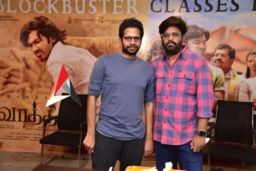 కోలీవుడ్ స్టార్ ధనుష్ నటించిన ద్విభాషా చిత్రం ‘సార్'(వాతి). ప్రముఖ నిర్మాణ సంస్థ సితార ఎంటర్టైన్మెంట్స్, ఫార్చ్యూన్ ఫోర్ సినిమాస్ తో కలిసి తెలుగు, తమిళ భాషల్లో ఈ చిత్రాన్ని నిర్మించింది. శ్రీకర స్టూడియోస్ సమర్పించిన ఈ చిత్రానికి సూర్యదేవర నాగవంశీ, సాయి సౌజన్య నిర్మాతలు. వెంకీ అట్లూరి దర్శకత్వంలో తెరకెక్కిన ఈ చిత్రంలో ధనుష్ సరసన సంయుక్త మీనన్ నటించింది. భారీ అంచనాలతో ఫిబ్రవరి 17న థియేటర్లలో విడుదలైంది. ముందు రోజు సాయంత్రం ప్రదర్శించిన ప్రీమియర్ షోల నుంచే ఈ చిత్రం పాజిటివ్ టాక్ తెచ్చుకుంది. ప్రేక్షకులు, విశ్లేషకుల నుంచి అద్భుతమైన స్పందన వస్తుండటంతో తాజాగా చిత్ర బృందం విలేకర్ల సమావేశం నిర్వహించి తమ ఆనందాన్ని పంచుకున్నారు.