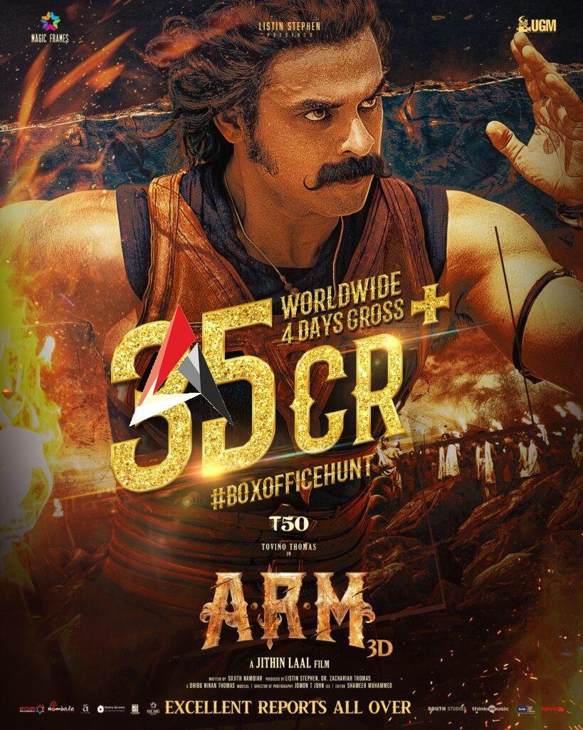 మలయాళ నటుడు టోవినో థామస్ జితిన్ లాల్ దర్శకత్వంలో నటించిన ఏఆర్ఎం చిత్రానికి మూవీ మేకర్స్ అజయంతే రాండమ్ మోషణం (ARM) అనే ఆసక్తికరమైన టైటిల్ తో ఈ చిత్రం సెప్టెంబర్ 12న ప్రేక్షకుల ముందుకు వచ్చింది. విడుదలైన అన్ని ఏరియాల్లో పాజిటీవ్ టాక్ ను సొంతం చేసుకొంది. అంతే కాకుండా కేవలం నాలుగు రోజుల్లో 35 కోట్లు కలెక్ట్ చేసి సంచలన విజయంగా పేరు తెచ్చుకుంది.