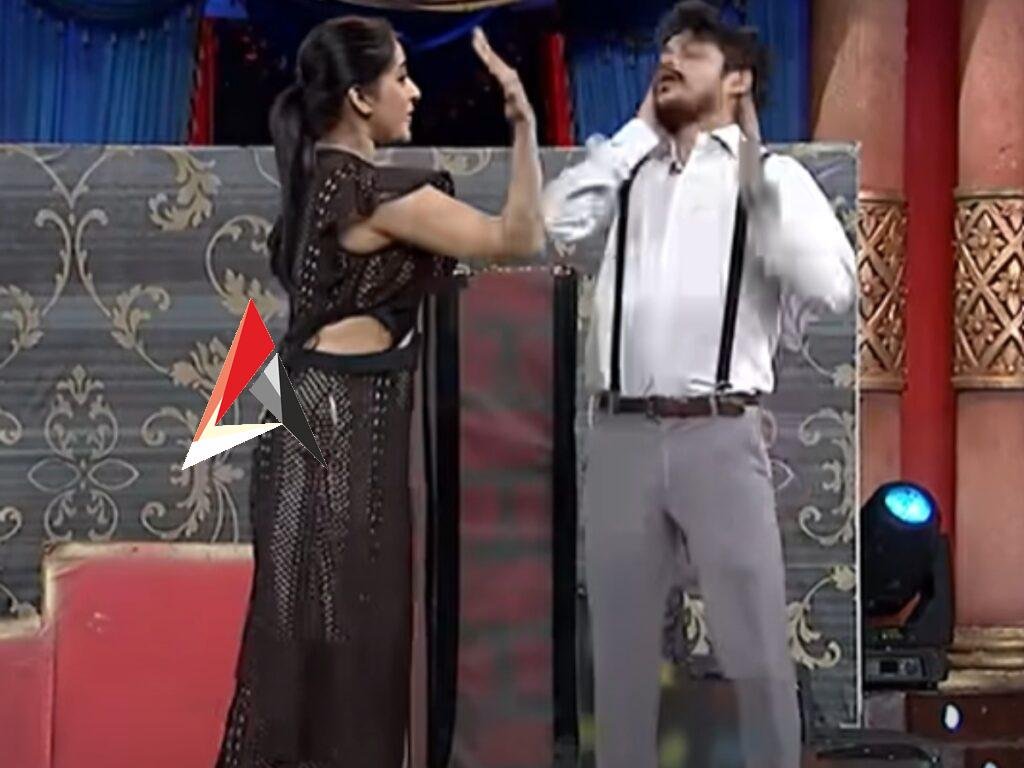 ఢీ కంటెస్టెంట్ పండు బుల్లితెరపై డ్యాన్సులు, కామెడీలు చేస్తూ దూసుకుపోతోన్నాడు. పేరుకే డ్యాన్సర్ అయినా కూడా కామెడీ స్కిట్లతోనూ పండు దుమ్ములేపుతున్నాడు. తాజాగా రాకింగ్ రాకేష్ స్కిట్లో కనిపించాడు. ఎంట్రీ సాంగ్కు రష్మీతో కలిసి పండు డ్యాన్స్ వేశాడు. పండుకు వ్యాల్యూ ఎప్పుడు ఉంటుంది? అని రష్మీని అడుగుతాడు పండు. చిలక్కొట్టినప్పుడు అని రష్మీ అంటుంది. అందుకే ఈ చిలకతో ఎంట్రీ ఇచ్చాను అని పండు అంటాడు. ఆ మాటతో పండు చెంప చెల్లుమనిపిస్తుంది రష్మీ. ఎందుకు కొట్టావ్ అని పండు ఆశ్చర్యపోతాడు. చిలక కొట్టింది అంటూ టపటపా వాయించేస్తుంది.