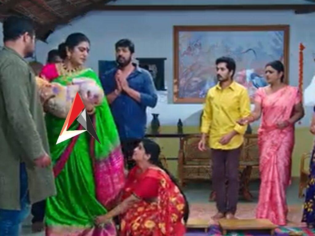 ఇక సీన్ కోటేశ్ శ్రీవల్లి బారసాలపై ఓపెన్ అవుతుంది. బాబుకు ఏం పేరు పెట్టాలని నిర్ణయించుకున్నారు..అని పంతులు అడుగుతాడు. ఆనంద్ అని కోటేశ్ చెబుతున్నప్పుడే.. రుద్రాణి ఎంట్రీ ఇచ్చి రంగరాజు.. రంగరాజు..అని చెబుతుంది. ఏం శ్రీవల్లి పేరు బాగుందా? నచ్చిందా?.. ఈ బిడ్డను నేను దత్తత తీసుకుంటాను.. అని రుద్రాణి దౌర్జన్యం చేస్తుంది.
