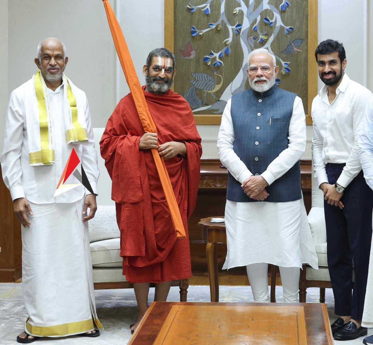 ప్రధానితో చిన్నజీయర్ స్వామి, మైహోమ్ గ్రూప్ చైర్మన్ డా.జూపల్లి రామేశ్వరరావు భేటీ